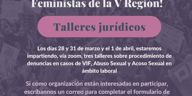 En el marco de una nueva conmemoración del Día de la Mujer, la Asociación de Abogadas Feministas V Región, ABOFEM Valparaíso, realizará talleres de capacitación vía zoom y de forma completamente gratuita, a agrupaciones feministas de la región, en temáticas como VIF, abuso sexual y acoso laboral.