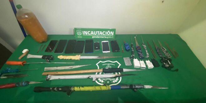 En menos de 72 horas se efectuaron tres procedimientos de registro y allanamiento en igual cantidad de unidades penales de la región de Valparaíso. Los operativos permitieron decomisar una serie de elementos prohibidos, entre ellos teléfonos celulares y armas blancas de fabricación artesanal.