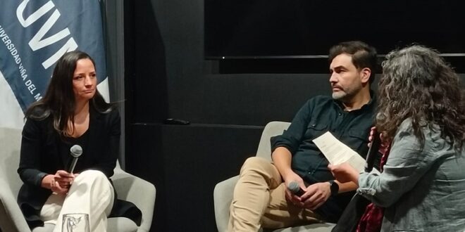 “Es muy emocionante, estoy súper contento por estar acá, por compartir con los colegas y con los alumnos. Creo que la Universidad Viña del Mar es un espacio donde se está generando un movimiento relevante en cuanto a contenidos, ciencia, reflexión y creo que es importante venir acá, a exponer nuestro trabajo en forma humilde, un trabajo con mucho rigor, con mucho profesionalismo y con mucha pasión, y Andrea (Arístegui) y yo estamos muy agradecidos de tener este espacio”, señaló Gonzalo Montaner.