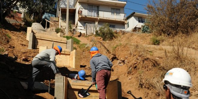 Un 65% de avance presentan las obras de extensión de redes públicas de agua potable y alcantarillado en el campamento Río Valdivia de Chorrillos, Viña del Mar que se iniciaron a fines de noviembre pasado, gracias a una inversión de $213.990.610 financiada por el MINVU, en el marco del Programa Nacional de Campamentos.