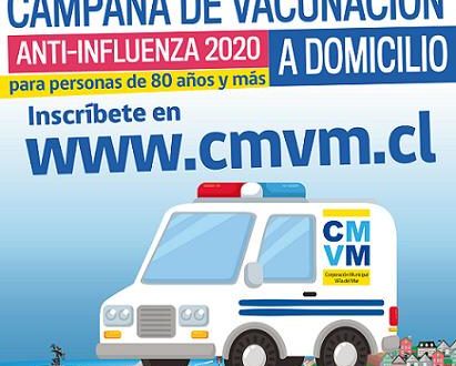 A partir de este viernes 27 de marzo, la Corporación Municipal Viña del Mar para el Desarrollo Docial, habilitará un link en su página web: http://www.cmvm.cl para inscribir a las personas de 80 años y más, a objeto que sean vacunadas en su domicilio contra la Influenza.