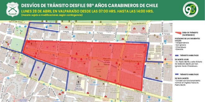Por esta razón, ese día se realizarán desvíos de tránsito a contar de las 07:00 horas, en el polígono que comprende las calles Independencia, San Ignacio, Chacabuco y Edwards.
