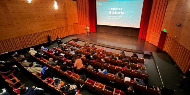 Rostros de curiosidad y una alta participación ciudadana fue lo que se vivió en el Teatro de Quilpué, en una nueva jornada de talleres de la campaña de educación cívica constitucional “Hagamos Historia”, impulsada por el gobierno para promover la participación y el voto informado de cara al plebiscito del 4 de septiembre y que contó con la colaboración de la Municipalidad de Quilpué.