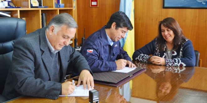 Suscribieron este convenio Oscar Sumonte, alcalde de Concón y Jorge Martínez, gerente de proyectos de Gas y Energía de ENAP, ante la presencia de la concejala María José Aguirre y los dirigentes de las juntas de vecinos beneficiadas con estos trabajos.