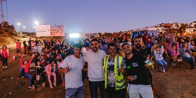 La cita de ambos profesionales se dio con cerca de 300 vecinos que resultaron damnificados por el megaincendio del pasado 2 de febrero, y quienes pudieron disfrutar de un grato momento con la proyección de la película “Mario Bros” en una pantalla gigante, además de completos y palomitas.