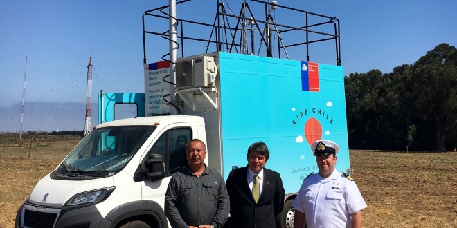 La autoridad ambiental junto al alcalde de Quintero Mauricio Carrasco y el capital de puerto de Quintero (s), Mario Besoain, mostraron el funcionamiento de la estación móvil del Ministerio del Medio Ambiente que cuenta con instrumentos de alta tecnología para la medición y estudios de material particulado (MP10 y MP2,5), como tambien gases procursores del material particulado fino y de cambio climático.
