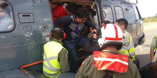 Alrededor de 100 personas fueron rescatadas desde las Termas del Flaco, ubicada en la Sexta Región, por el Helicóptero Súper Puma “Naval 81”, luego de estar aislados desde el sábado 25 de febrero producto de los aluviones que se registraron en esa zona y en diferentes regiones del país.