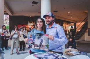 Con moto incluida llegó Francisco “Chaleco” López ayer en Mall Marina, el piloto nacional se …