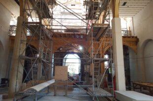 Con trabajos en la nave central y columnas interiores del templo, avanzan las obras de …