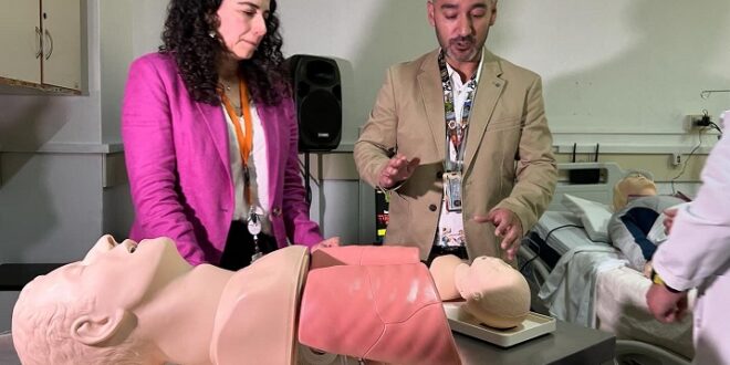 Claudia Benavides, enfermera coordinadora de la Unidad de Relacionamiento Asistencial Docente y de la Unidad de Simulación Clínica, explica que cuentan con equipos de alta fidelidad que recrean a un adulto, un niño y un recién nacido, así como fantomas y torsos de reanimación, además de equipamiento de audio y grabación para replicar las capacitaciones online: “La idea es que el modelo lo participamos todos. Nosotros nos encargamos de lo que es la programación, planificación, del desarrollo de cada curso que podamos generar, trabajando en conjunto con capacitación, con las subdirecciones, levantando las necesidades de formación de los distintos servicios clínicos, porque la idea es que este centro sea para el hospital y para la red, para los funcionarios que trabajamos acá, poder mejorar y generar una cultura de seguridad de atención y estandarizar algunos procesos”.