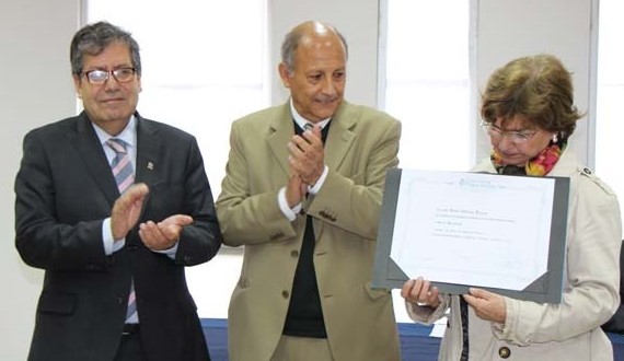 En un ejercicio de la memoria y de reencuentro con quien fuera uno de los hijos de esta casa de estudios en el ámbito académico, el rector de la UPLA, Patricio SanhuezaVivanco, otorgó el reconocimiento especial aprobado por unanimidad de la Junta Directiva, a la viuda de Jaime Aldoney, María Isabel Bazignan, y a su hermano Gabriel.