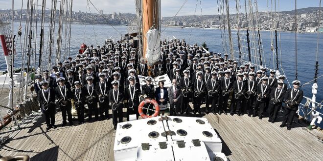 Por su parte, el Almirante De La Maza expresó: “Este viaje tiene un gran valor para mí, ya que estoy cerrando ciclos. Fui Comandante de la ‘Esmeralda’ en 2013 y 2014, y realicé cuatro viajes a bordo. Como lo mencionó la Ministra, este buque es una verdadera escuela en el mar, donde formamos a las nuevas generaciones de marinos, nuestros futuros Oficiales y Gente de Mar. Aquí se lleva a la práctica lo aprendido en las aulas: clases de meteorología, astronomía, cálculo astronómico a través de las estrellas y el sol, entre otras materias. También se espera que nuestros tripulantes se empapen de las culturas que conocerán”.