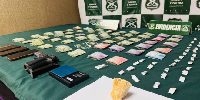 En el segundo hecho, durante una fiscalización en calle Bellavista con Condell, el personal especializado sorprendió a dos personas efectuando transacción de drogas, procedimiento a la deteción de un hombre de 27 años y a una mujer de 62 años, incautando dosis de clorhidrato de cocaína, $93.000 de dinero en efectivo y un celular.