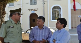 El alcalde de Limache, Daniel Morales Espíndola, junto al gobernador de la provincia de Marga Marga, Christian Cárdenas, y el jefe de servicios de la Prefectura de Marga Marga, Coronel …