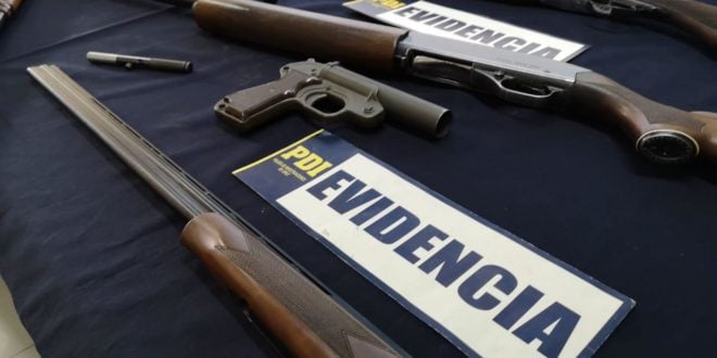 En el procedimiento se incautó munición y ocho armas de fuego consistentes en escopetas, pistolas, un fusil y un rifle, además de partes como culatas, puntas de mira, disparadores, etc.