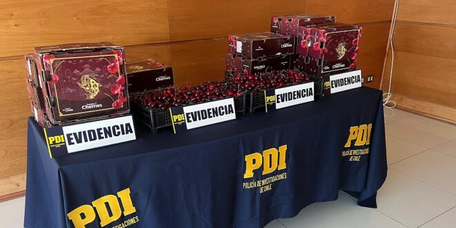 Detectives pertenecientes a la Brigada de Investigación Criminal San Antonio de la Policía de Investigaciones de Chile detuvieron a dos personas por el delito de Receptación Flagrante, quienes en su poder tenían especies asociadas a un robo que afectó a una empresa exportadora de frutas, en el que sujetos desconocidos sustrajeron la totalidad de la carga, en cuyo interior se encontraban cerezas de exportación, avaluadas en 245 millones de pesos.