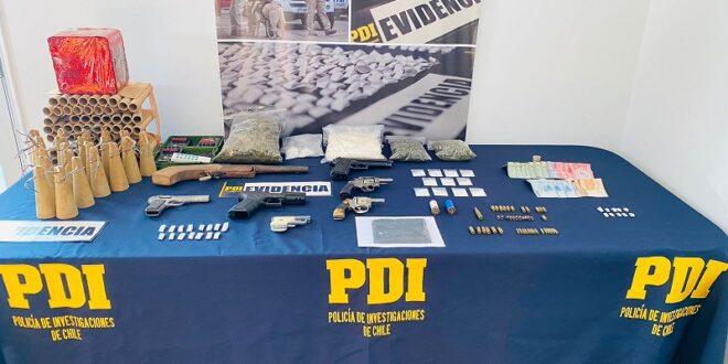 Detectives de la agrupación MT-Cero de la Brigada de Investigación Criminal Quillota de la Policía de Investigaciones de Chile, incautaron armamento y detuvieron a dos personas, quienes comercializaban sustancias ilícitas en un domicilio del sector Los Lúcumos, cercano al centro de la ciudad.