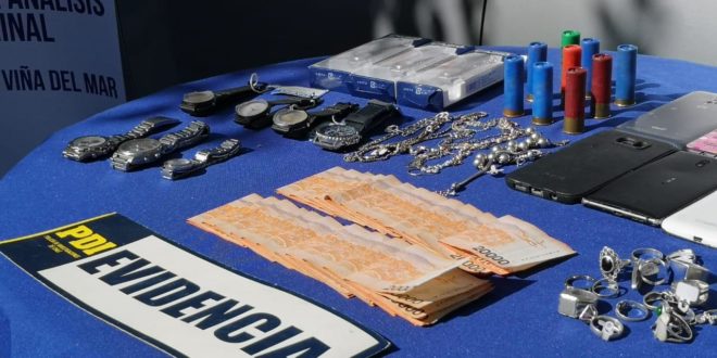 La detención de los imputados M.V.H.; N.U.B. y M.L.D., se concretó en un operativo policial realizado en el sector de La Isla, San Roque y Playa Ancha, donde la policía civil incautó municiones, cannabis sativa, medicamentos sujetos a control de estupefaciente, joyas, relojes, dinero en efectivo, además, del vehículo utilizado para la comisión de los delitos.