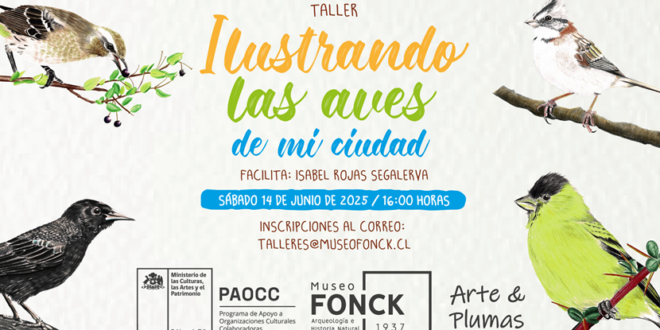 El sábado 14 de junio de 2025, a las 16:00 horas, Museo Fonck ubicado en 4 Norte 784, esquina 1 Oriente, Viña del Mar, realizará un taller gratuito y presencial, titulado “Ilustrando las aves de mi ciudad”, enfocado a personas desde los 17 años.