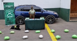 Carabineros del OS7 San Felipe detuvo a dos sujetos tras incautar desde el automóvil en el que se movilizaban 19,5 kilos de marihuana, un revólver calibre 22 con municiones, una …